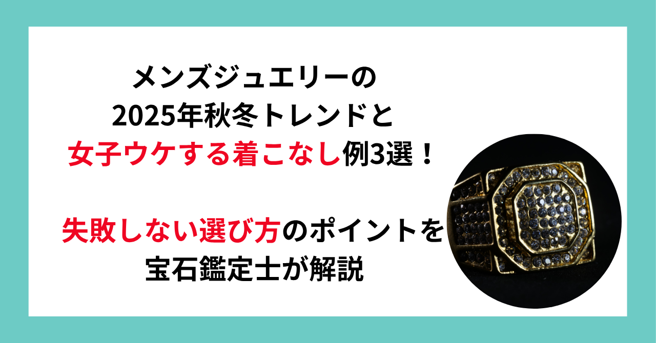 2025年秋冬のメンズジュエリートレンドを押さえつつ、女子ウケする着こなしをマスターするために、今回は宝石鑑定士の視点からおすすめのジュエリーとコーディネート術をご紹介します。さらに、失敗しないジュエリーの選び方についても解説します。
